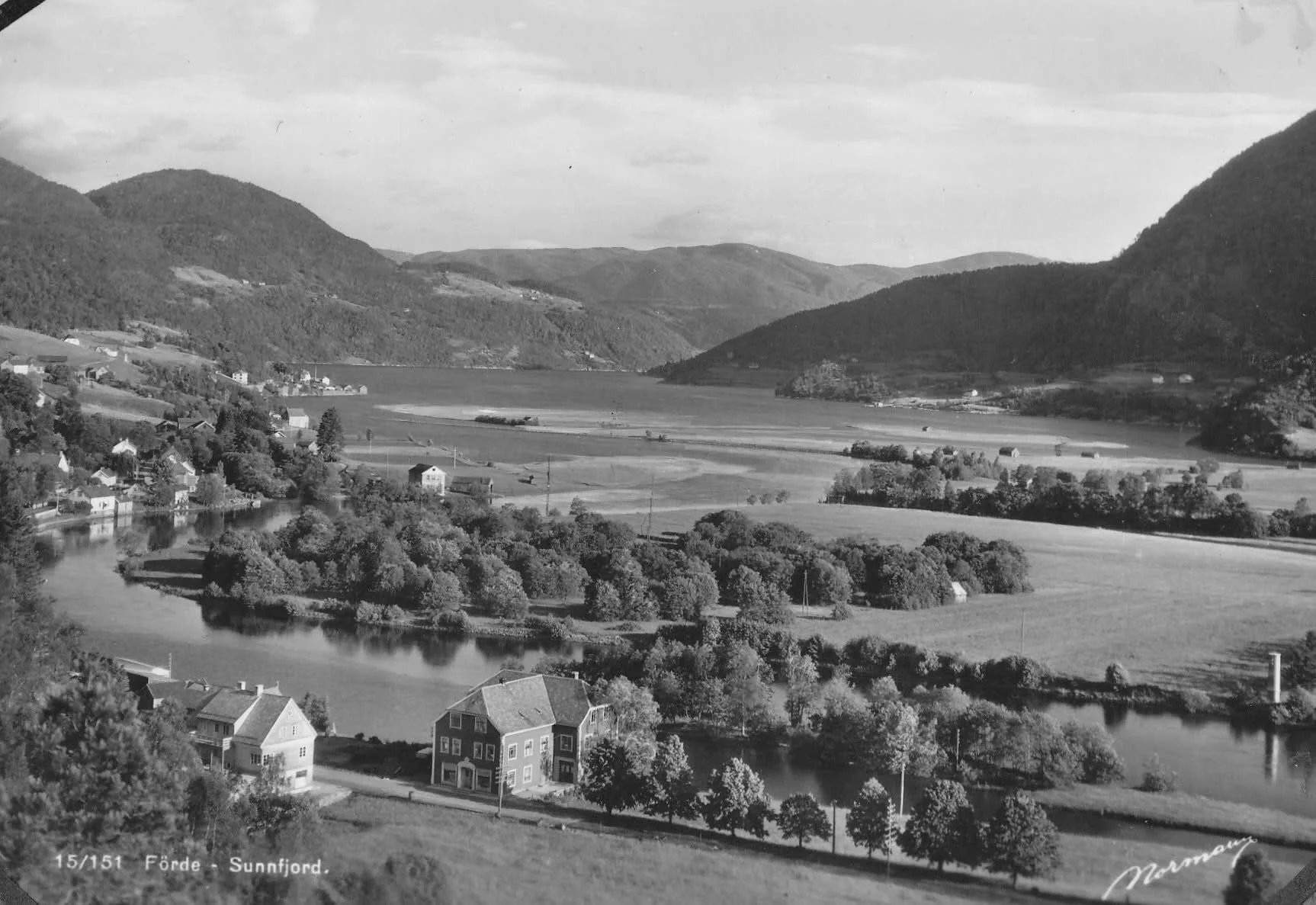 "I alle tider har kunstmålarar, fotografar og tilreisande, og vonleg ein stor del av førdefolket sjølv, ovundra det vene elvepartiet nedanfor Langebrua. Den breide elva med skogholmen er ein så vakker idyll, at den har vorte det sentrale i så mangt eit bilete frå bygda. Denne idyllen har vore årsak til så mange begeistra utrop: " kor vakkert det er i Førde! - Veit De, at De bur i landets venaste bygd? sa ein vidreist turist."